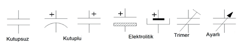 Kondansatör, elektrik enerjisini kapasitesine bağlı olarak belli bir süreliğine depo etmek için kullanılan devre elemanıdır. Kondansatörün elektrik enerjisini depo edebilme özelliğine kapasite denir. Kapasite “C” harfi ile gösterilir ve birimi farad (F)’dır. Kondansatör, devrelerde filtreleme elemanı olarak kullanılır. Kondansatörlerin ülkelere göre değişen birçok sembolü olsa da, en çok kullanılanları aşağıda gösterilmiştir.